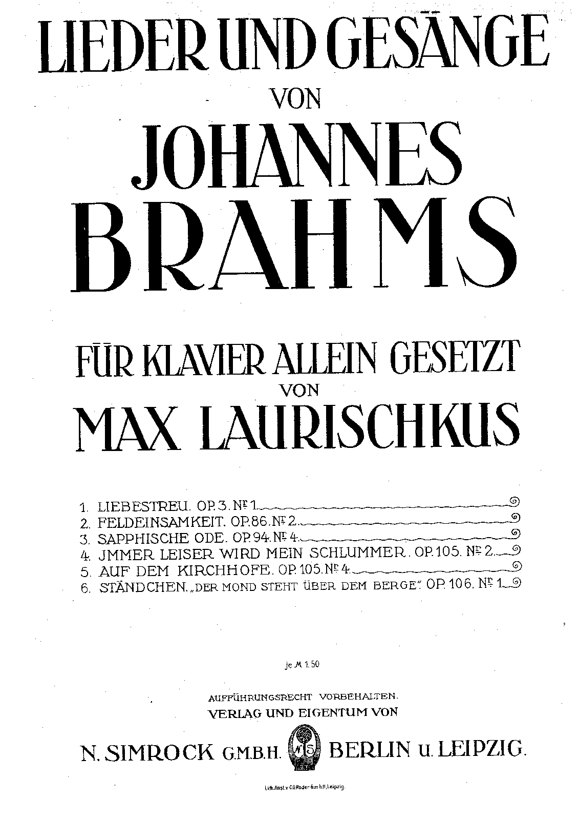 | Extra Information | Liebe und Frühling I (No.2) was revised by Brahms in 1882. This version was first published in 1882. |