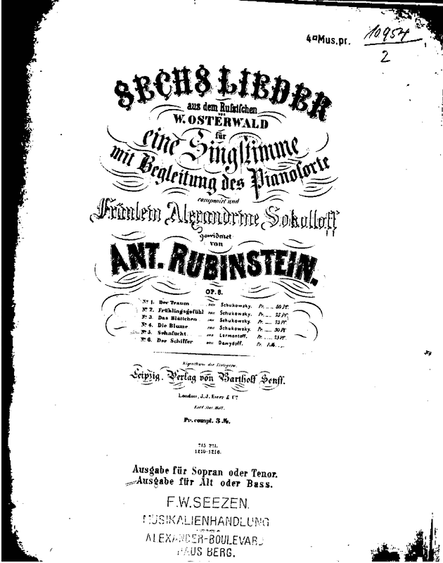 | Genre Categories | Songs; For voice, piano; For voices with keyboard; |