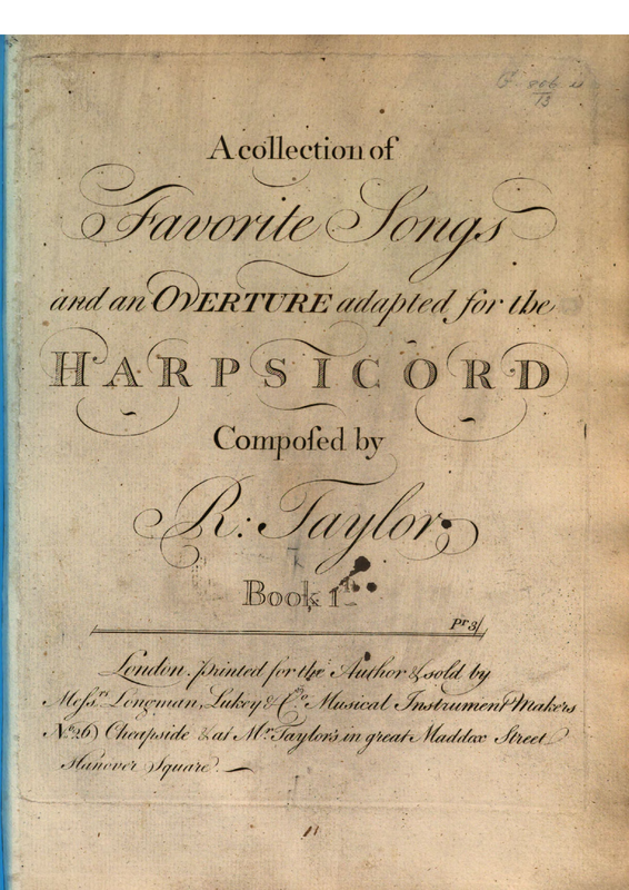 | Alternative. Title | A collection of Favorite Songs and an Overture adapted for the Harpsicord [sic] |