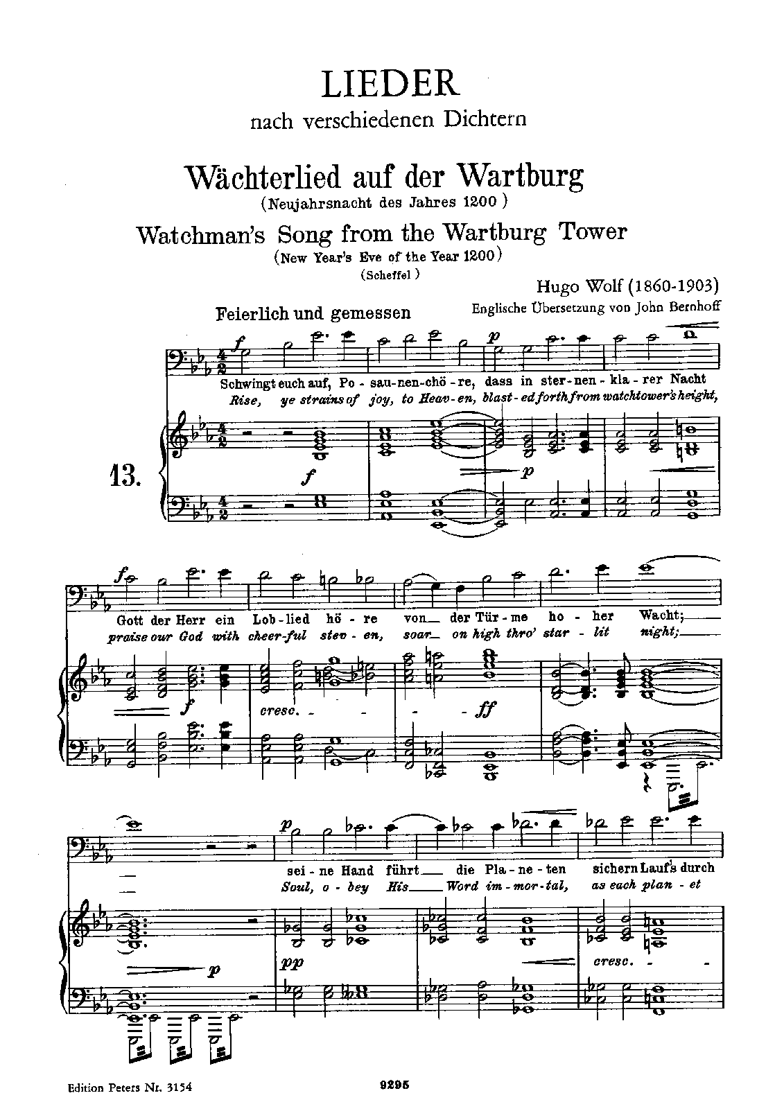 | Extra Information | No.6 was quoted in Haberlandt's graveside funeral oration for Wolf on 24th February 1903 in the Central Cemetery, Vienna. It was, however, as noted above composed about 20 years earlier. This set as a whole was published by Wetzler ca.1888. |