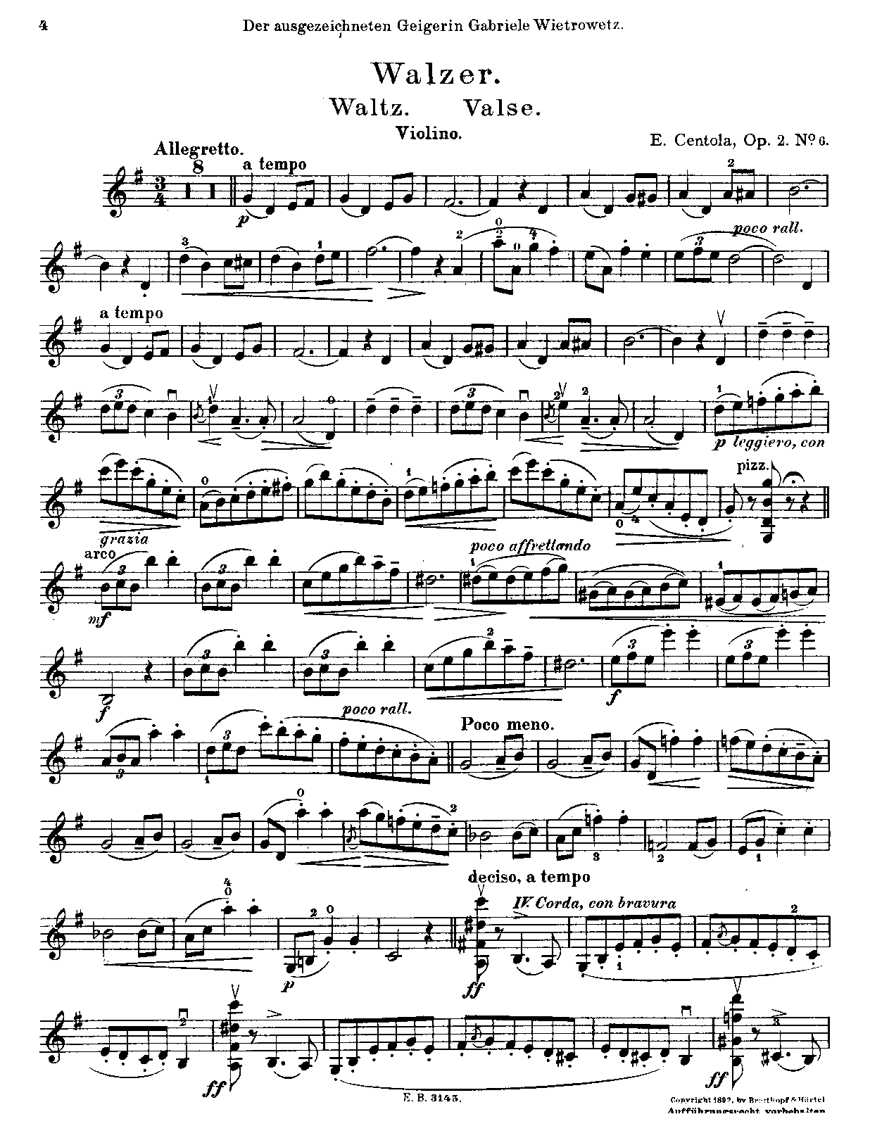 | Dedication | Der ausgezeichneten Geigerin Gabriele Wietrowetz |
