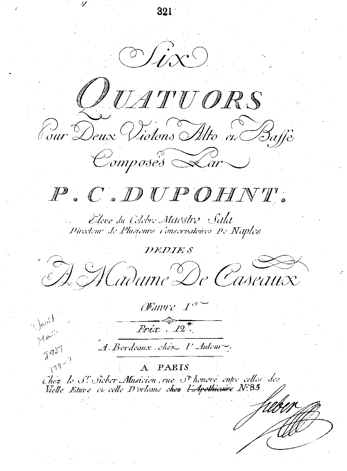 | Alternative. Title | Six quatuors pour deux violons, alto et basse |