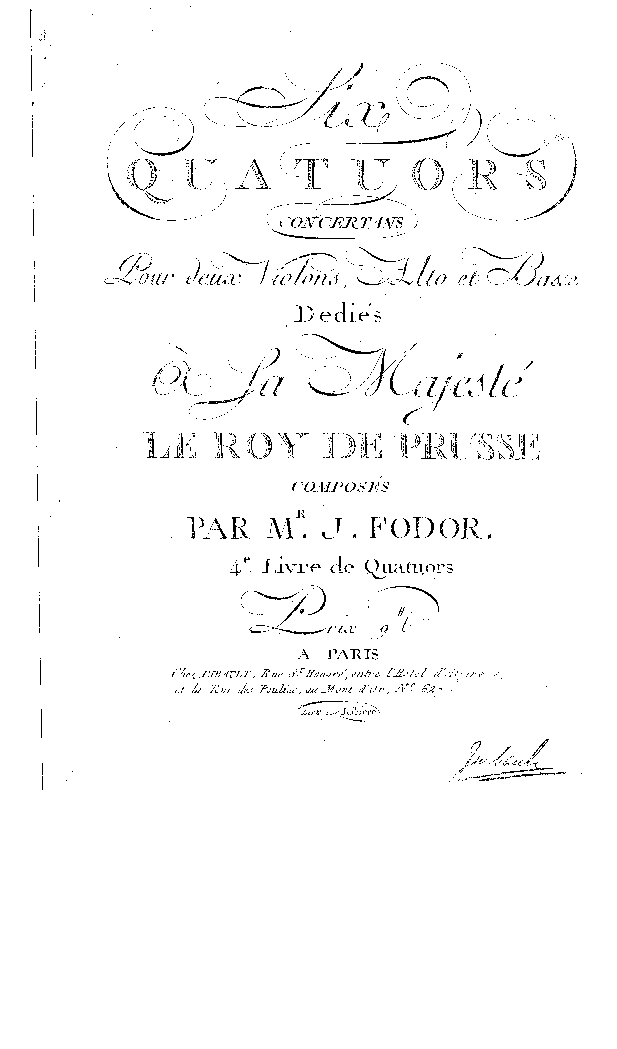 | Opus/Catalogue NumberOp./Cat. No. | Book 4 (4e livre de quatuors) |