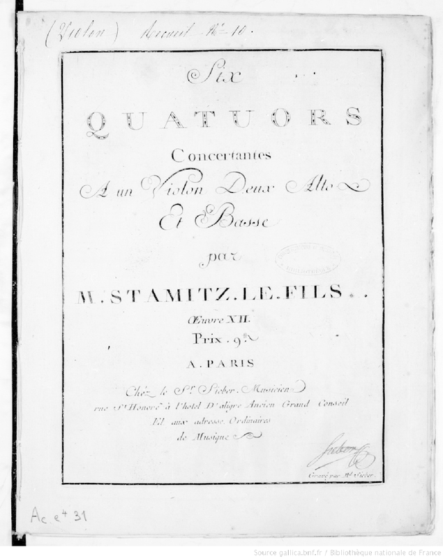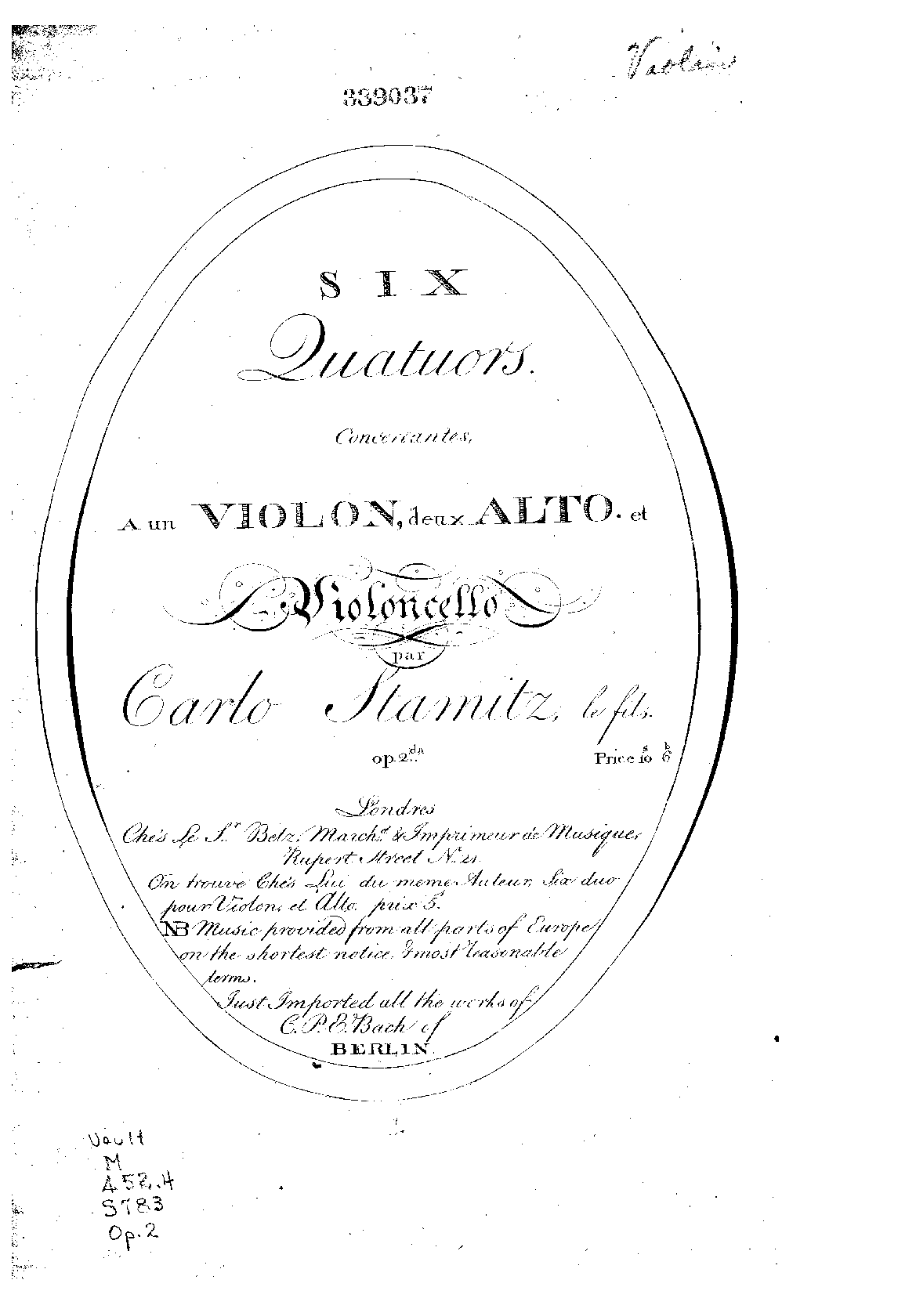First published without opus number (Paris, Sieber 1774; in the catalogue listed as Op.12), then as Op.15 (Paris, Sieber 1776); as Op.2 by Betz