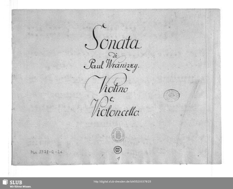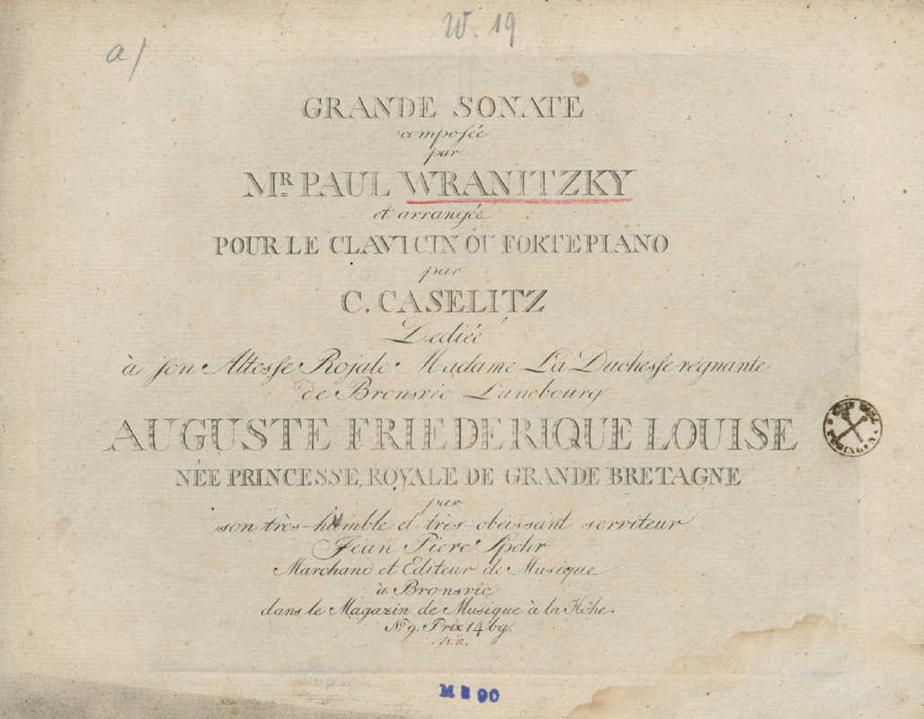 Misc. Notes Sonata pour le Clavecin ou Piano-Forte avec un Violino et Violoncello Tiré d'un Quatuor de Paul Wranizky IIme Oeuvre de Clavecin