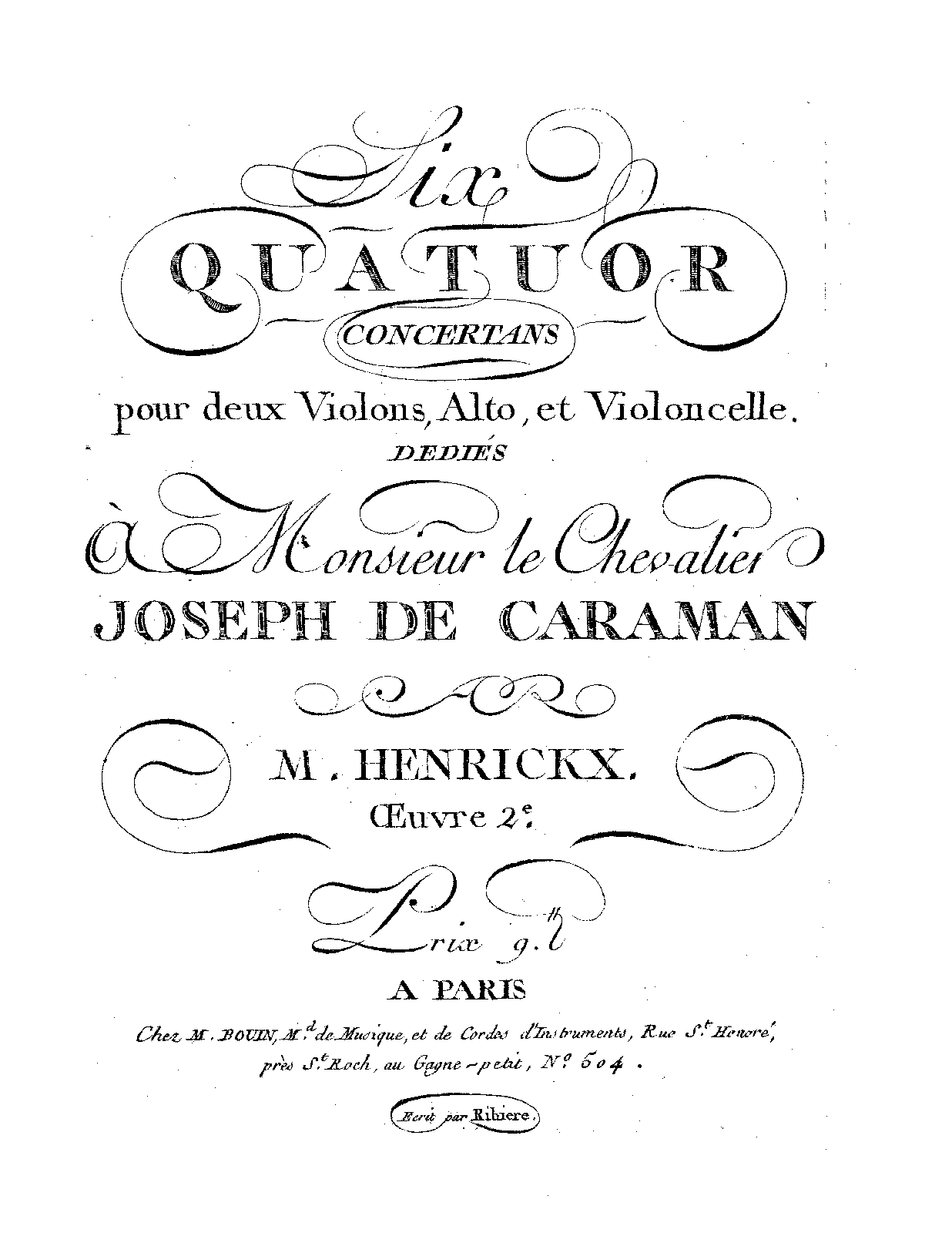 | Alternative. Title | Six quatuors concertant pour deux violons, alto et violoncelle |