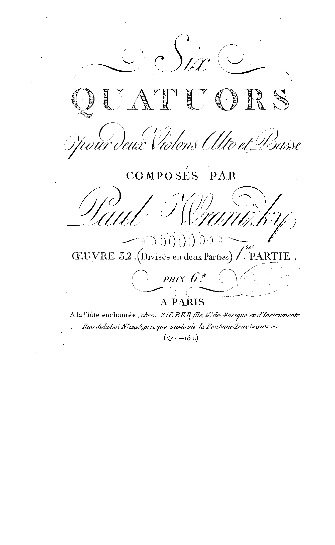 | Genre Categories | Quartets; For 2 violins, viola, cello; Scores featuring the violin; |