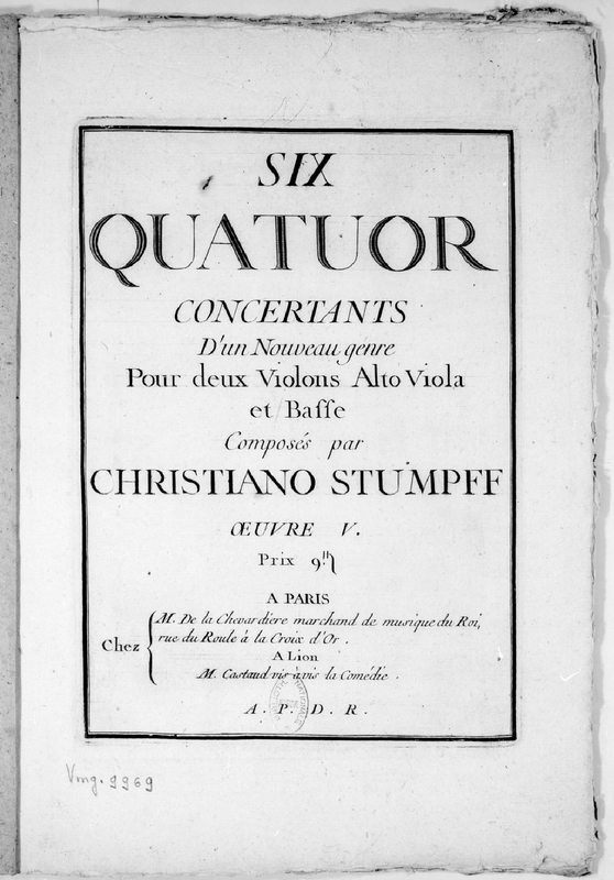 | Alternative. Title | Six Quatuor concertants d'un nouveau genre pour deux violons, alto viola et basse |