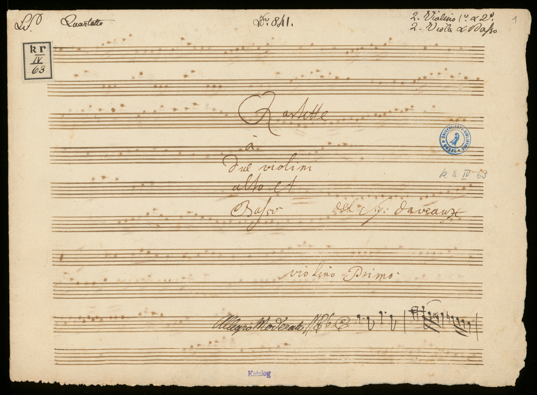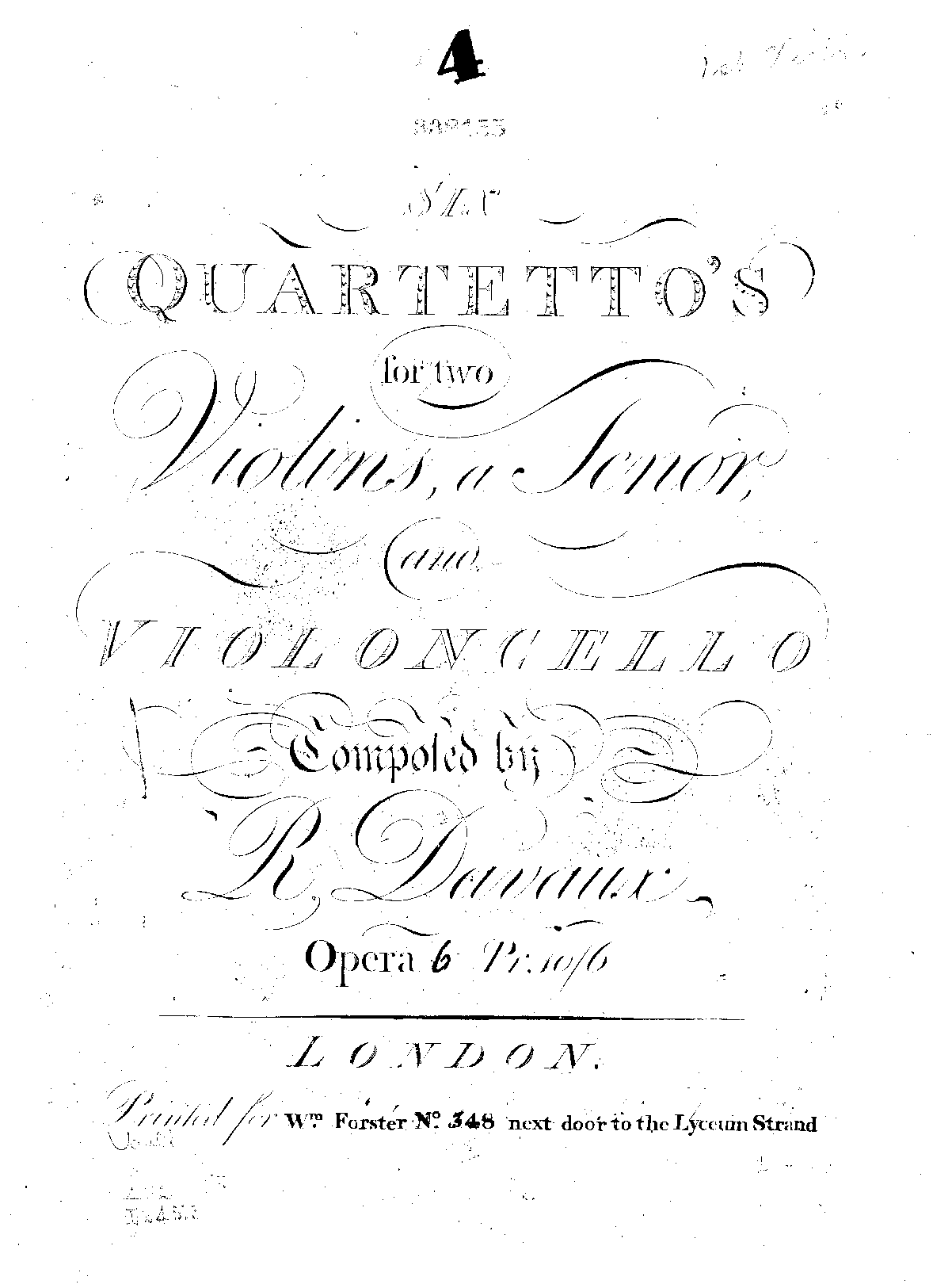 | Genre Categories | Quartets; For 2 violins, viola, cello; Scores featuring the violin; |