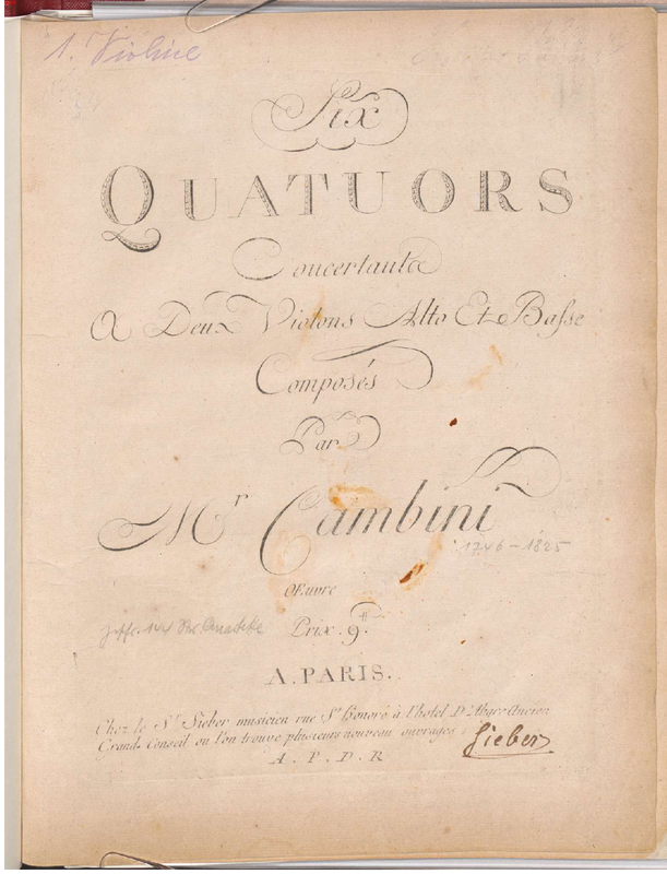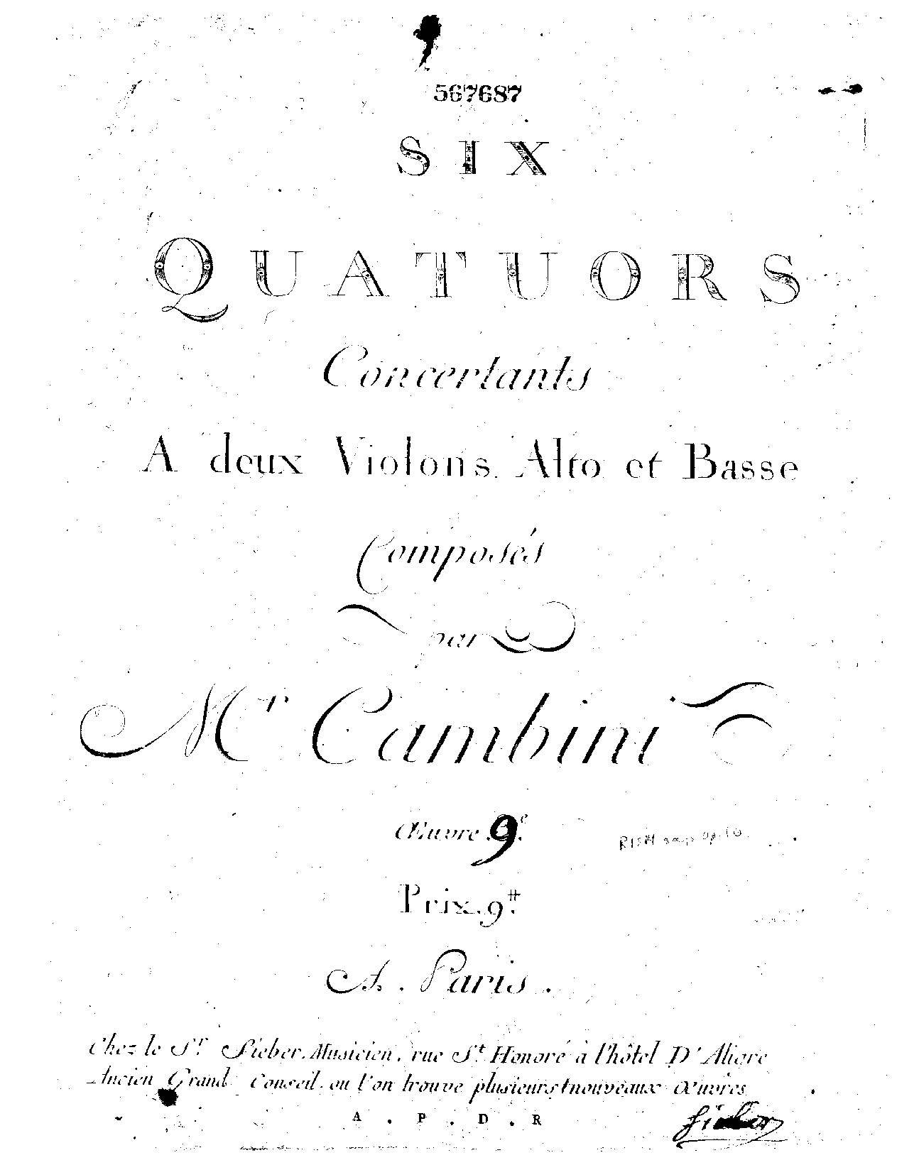 | Alternative. Title | Six Quatuors Concertant a Deux Violons, Alto et Basse |