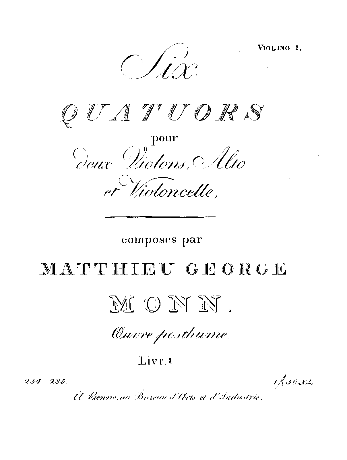 | Genre Categories | Quartets; For 2 violins, viola, cello; Scores featuring the violin; |