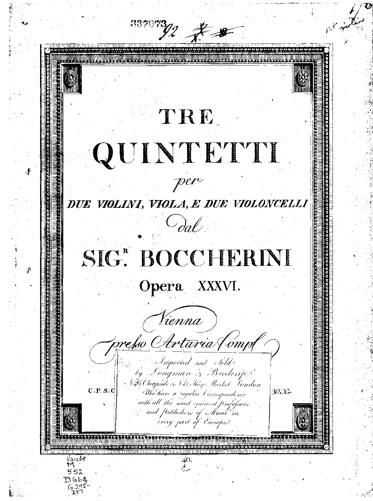 | Opus/Catalogue NumberOp./Cat. No. | G.295-300 ; Op.25 in Boccherini's autograph catalogue ; G.295-297 published as Op.36, G.298 as Op.47 No.9, G.299 as Op.37 No.17, G.300 as Op.47 No.5 |