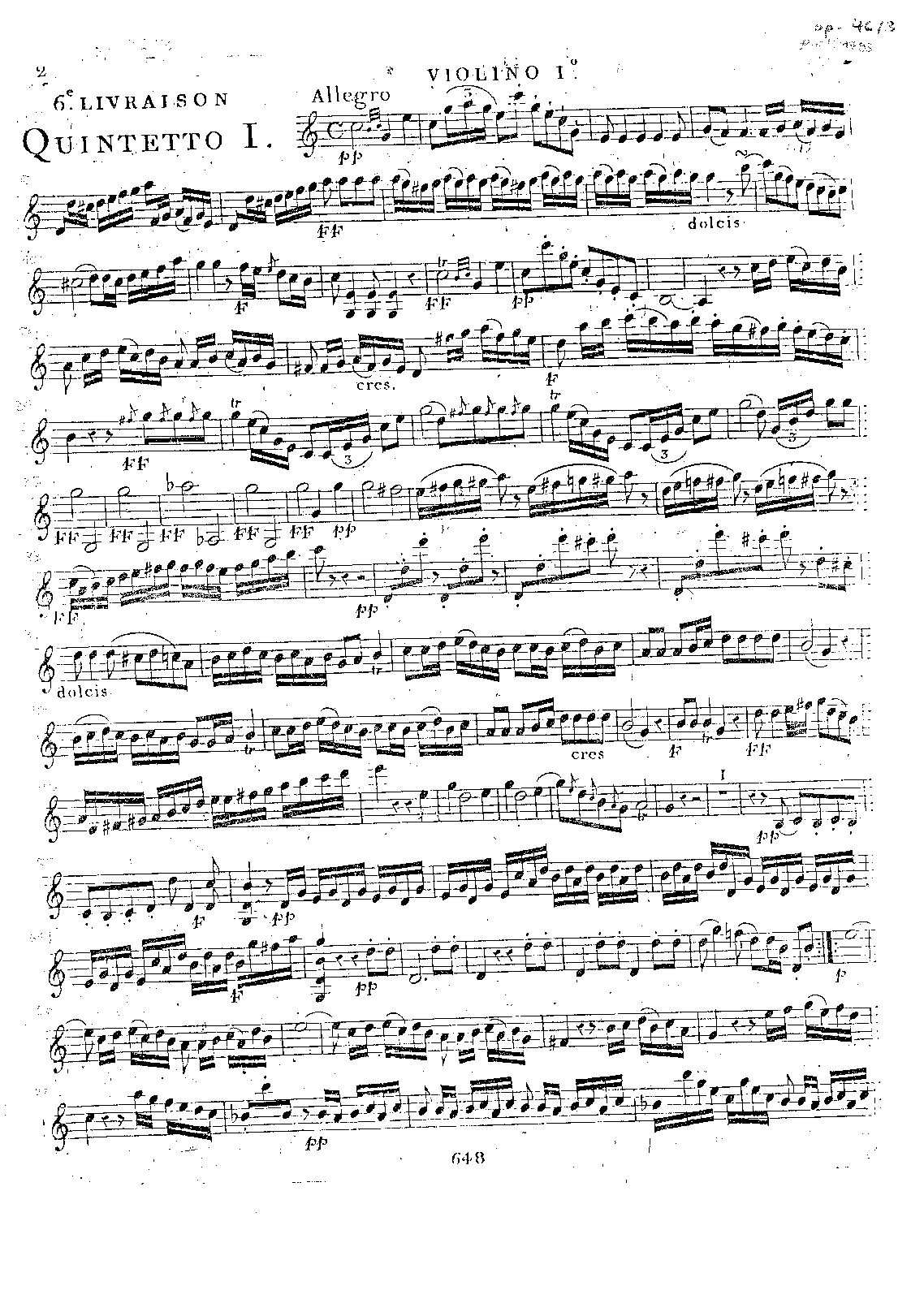 G.359-364, Op.46 in Boccherini's autograph catalogue; published as part of Op.37 (No.1, 3-6) and Op.47 (No.2)