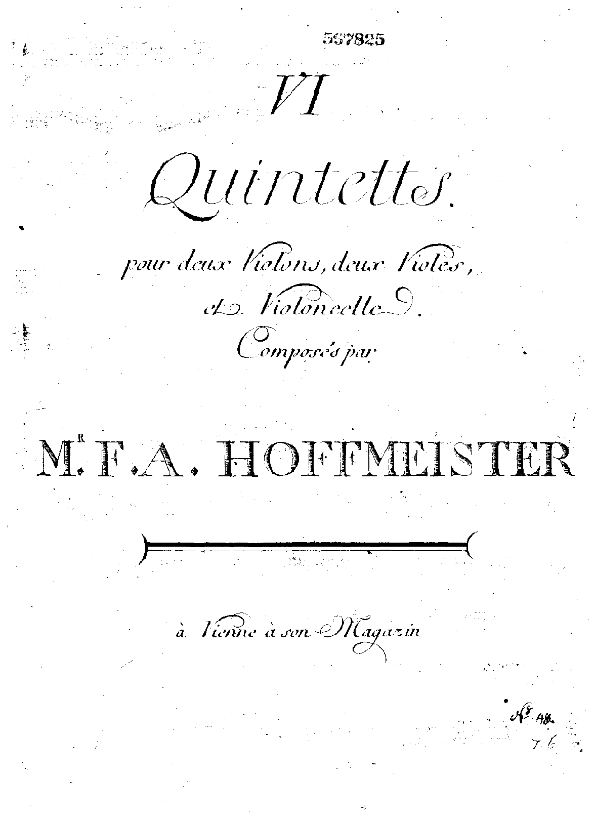 | First Publication. | 1788 - Vienna: Hoffmeister |
