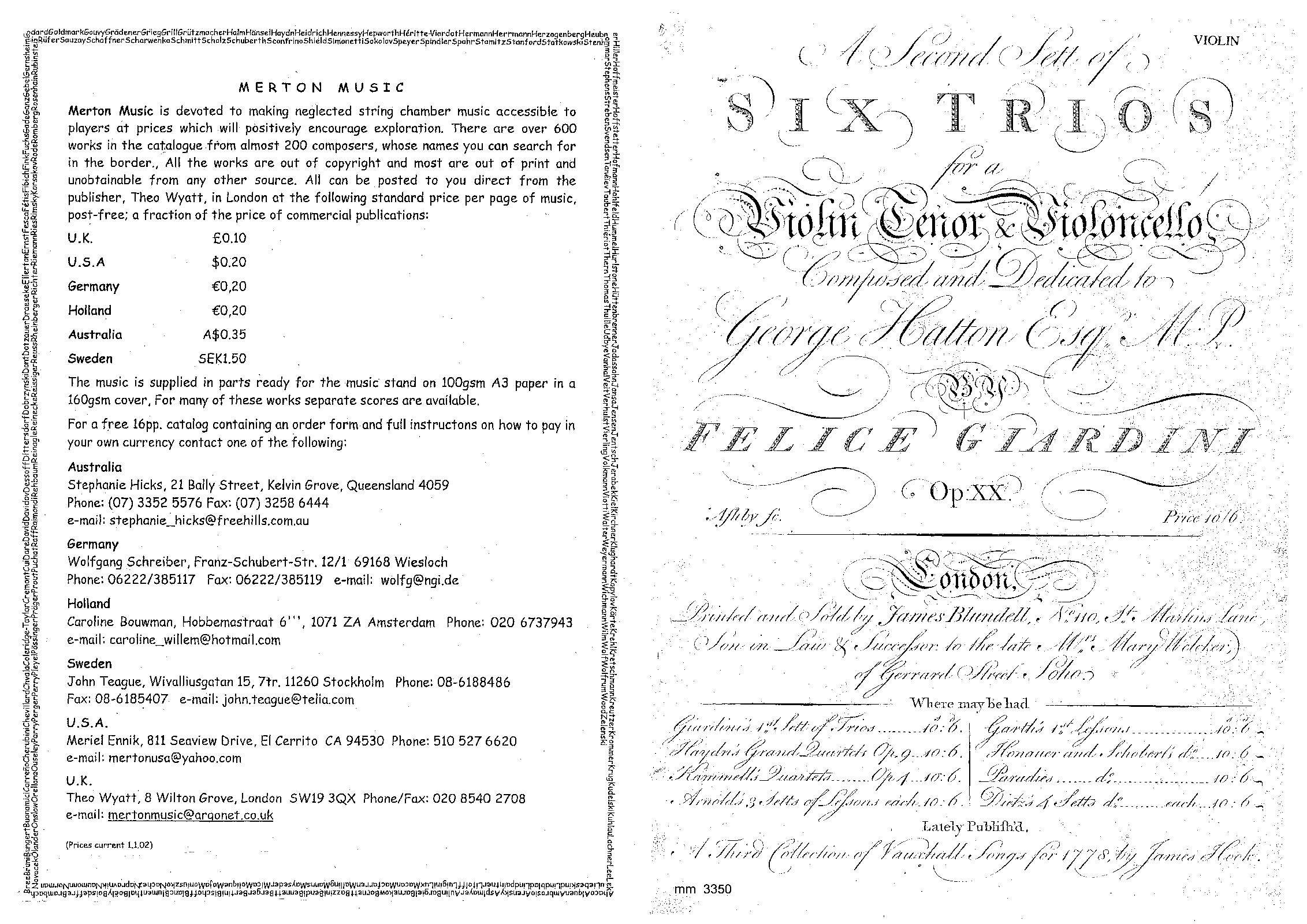 | Opus/Catalogue NumberOp./Cat. No. | Op.20 (London: Blundell, 1778) Op.13 (Paris: Bailleux) |