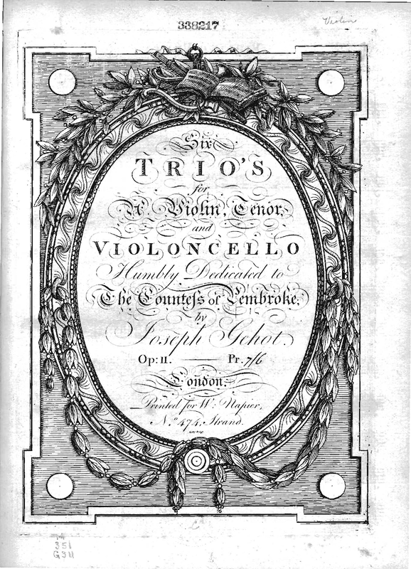 | Alternative. Title | Six Trios for a violin, tenor, and violoncello, op. II, by Joseph Gehot. |