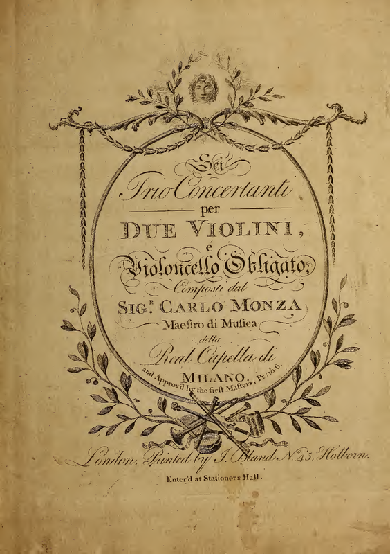 | Alternative. Title | Sei trio concertanti per due violini, e violoncello obligato |