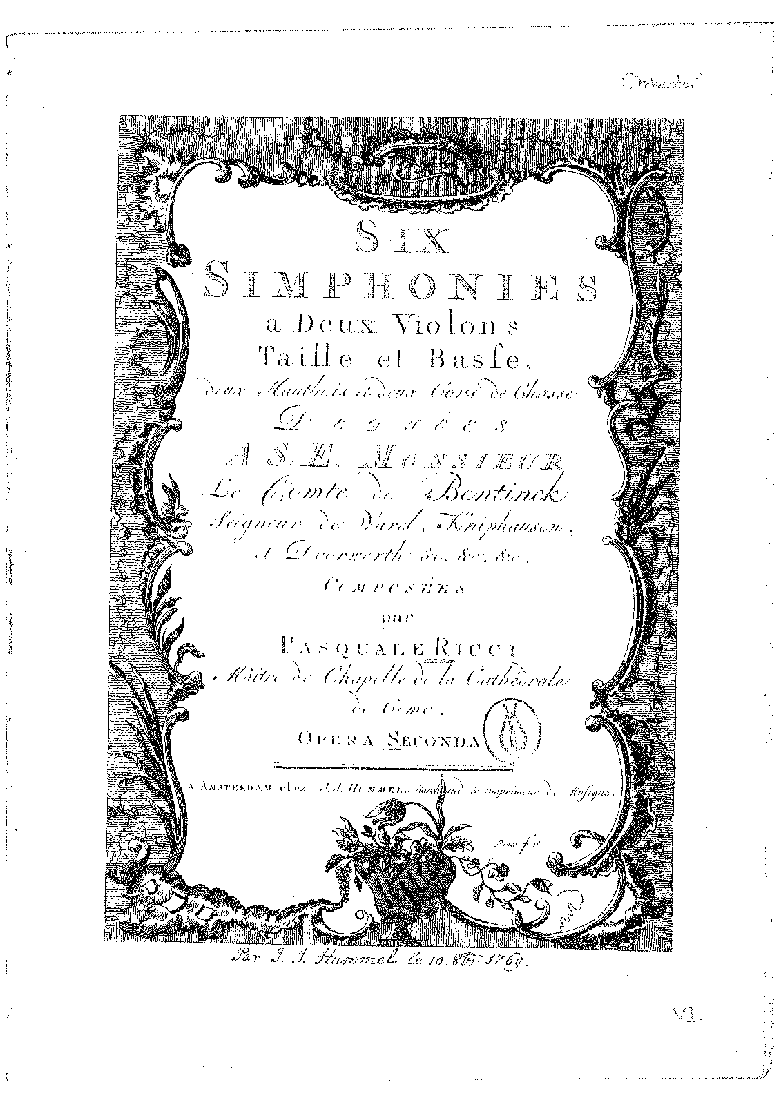 Six Simphonies a Deux Violons, Taille & Basse, deux Hautbois et deux Cors de Chasse