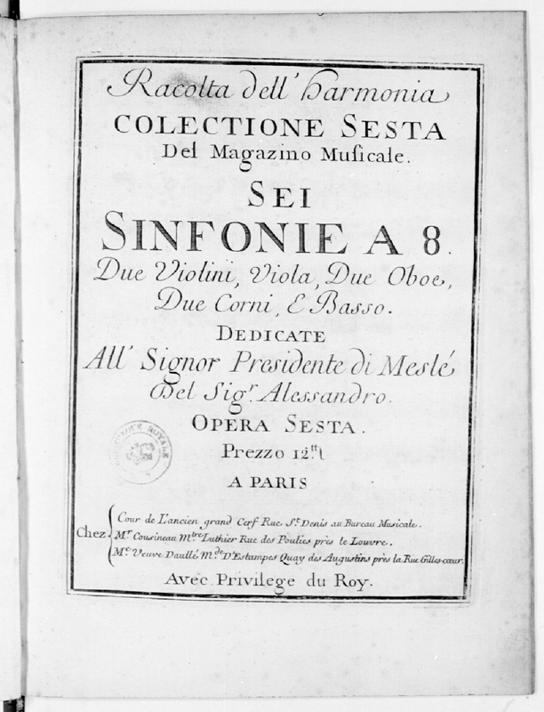 Sei Sinfonie a 8. Due violini, viola, due oboe, due corni, e basso