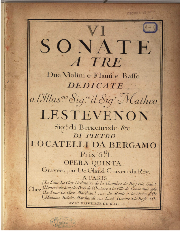 Pietro Antonio Locatelli: Opera Omnia, Vol.5 Mainz: Schott, 1994. Plate S. & Co. 7215.
