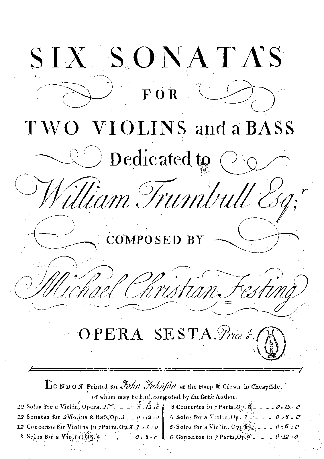 | Alternative. Title | Six Sonata's for Two Violins and a Bass |