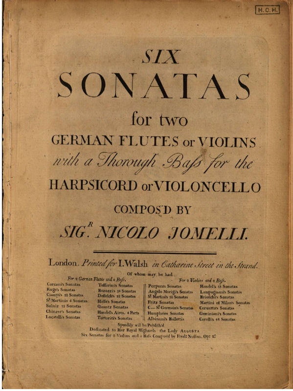 | Alternative. Title | Six sonatas for two German flutes or violins with a thorough bass for the harpsichord or violoncello |