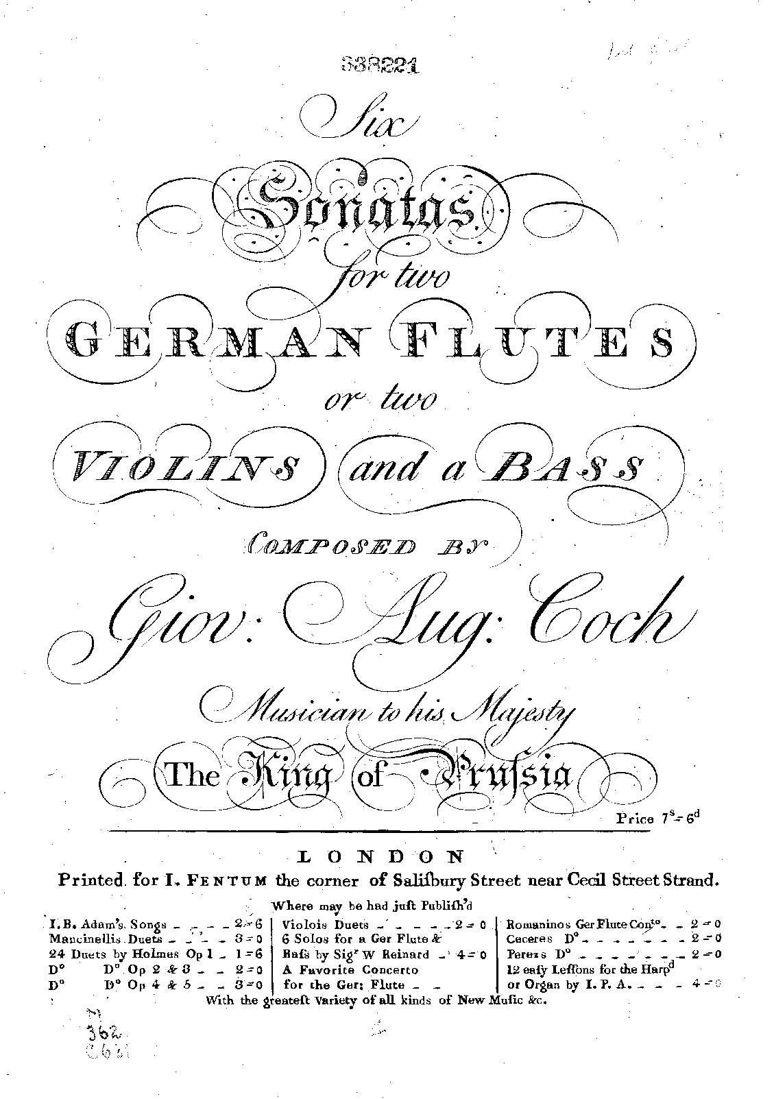 | Alternative. Title | 6 Sonatas for 2 German Flutes or 2 Violins and a Bass |
