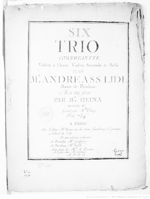 | Alternative. Title | Six Trio concertantte [sic] Violino o Flauto, Violino Secondo et Basso |