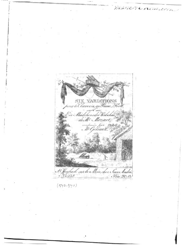 - Six Variations pour le Clavecin ou Piano-Forte sur l'Air / Ein Mädchen oder Weibchen / tiré de l'Opera / Die Zauberflöte / de Mr. Mozart</span>