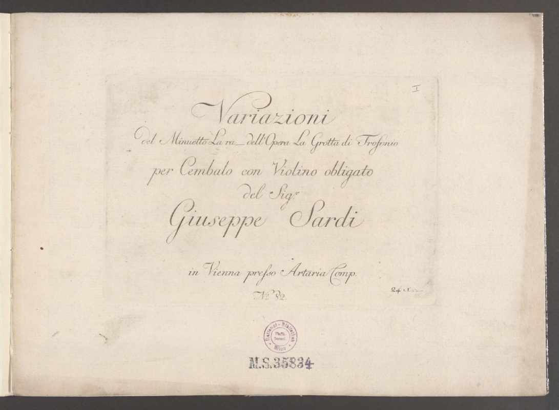 | Alternative. Title | Variazioni del Minuetto La ra _ dell'Opera La Grotta di Trofonio [Salieri] per Cembalo con Violino obligato |