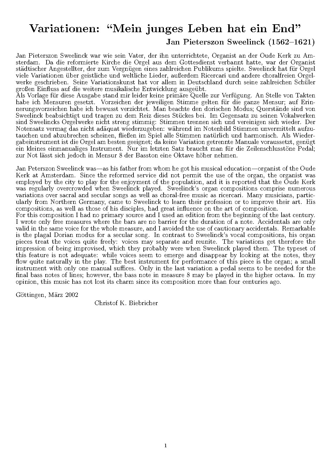 | Work Title | 6 Variations on 'Mein junges Leben hat ein End' |
