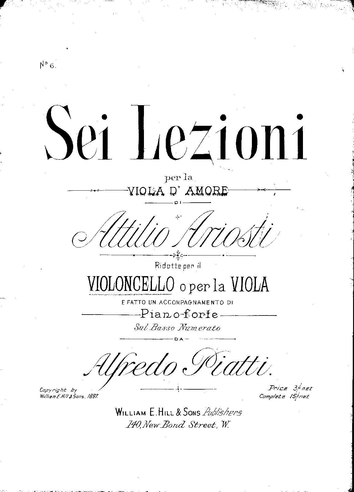 | First Publication. | 1724 in 6 Cantatas and 6 Viola d'Amore Lessons |