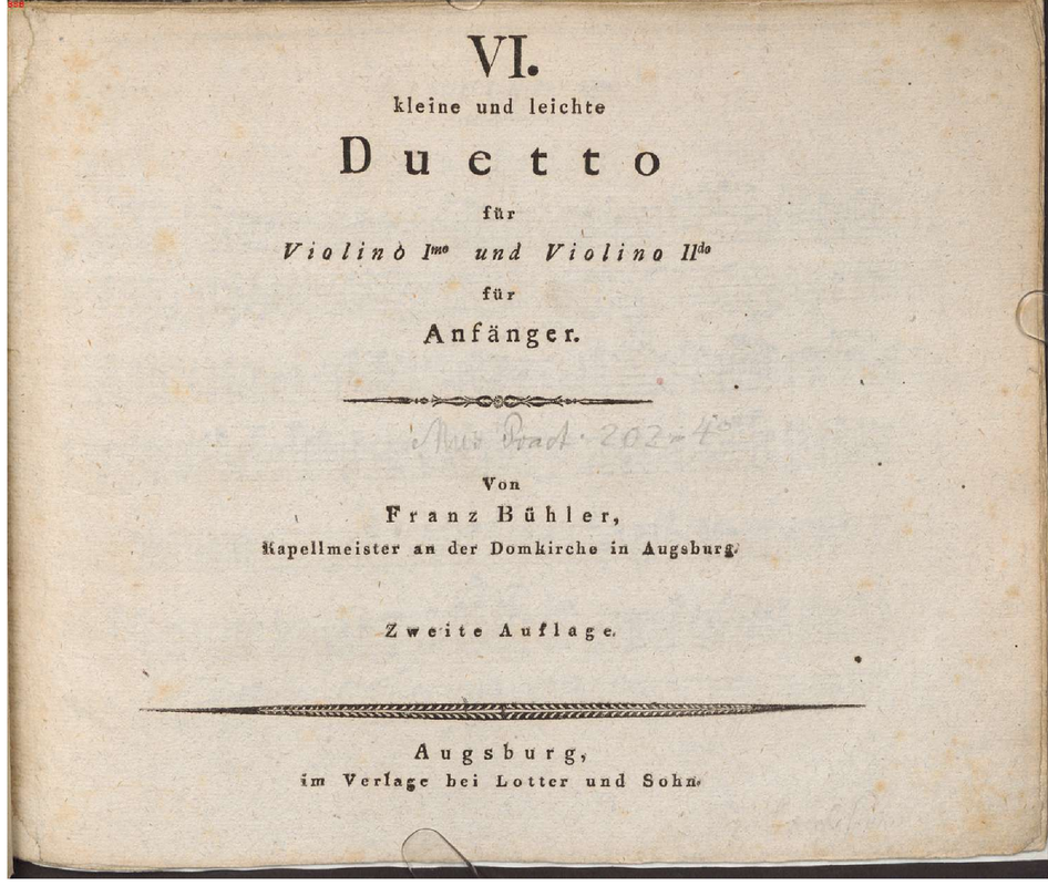 | Alternative. Title | VI. kleine und leichte Duetto für Violino I.me und Violino II.do für Anfänger |
