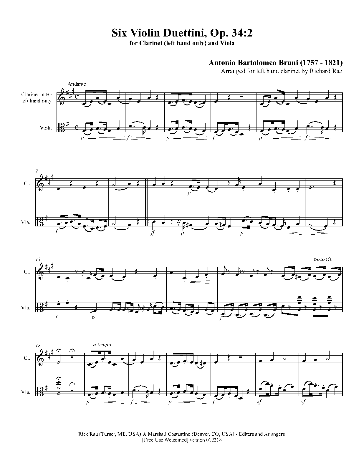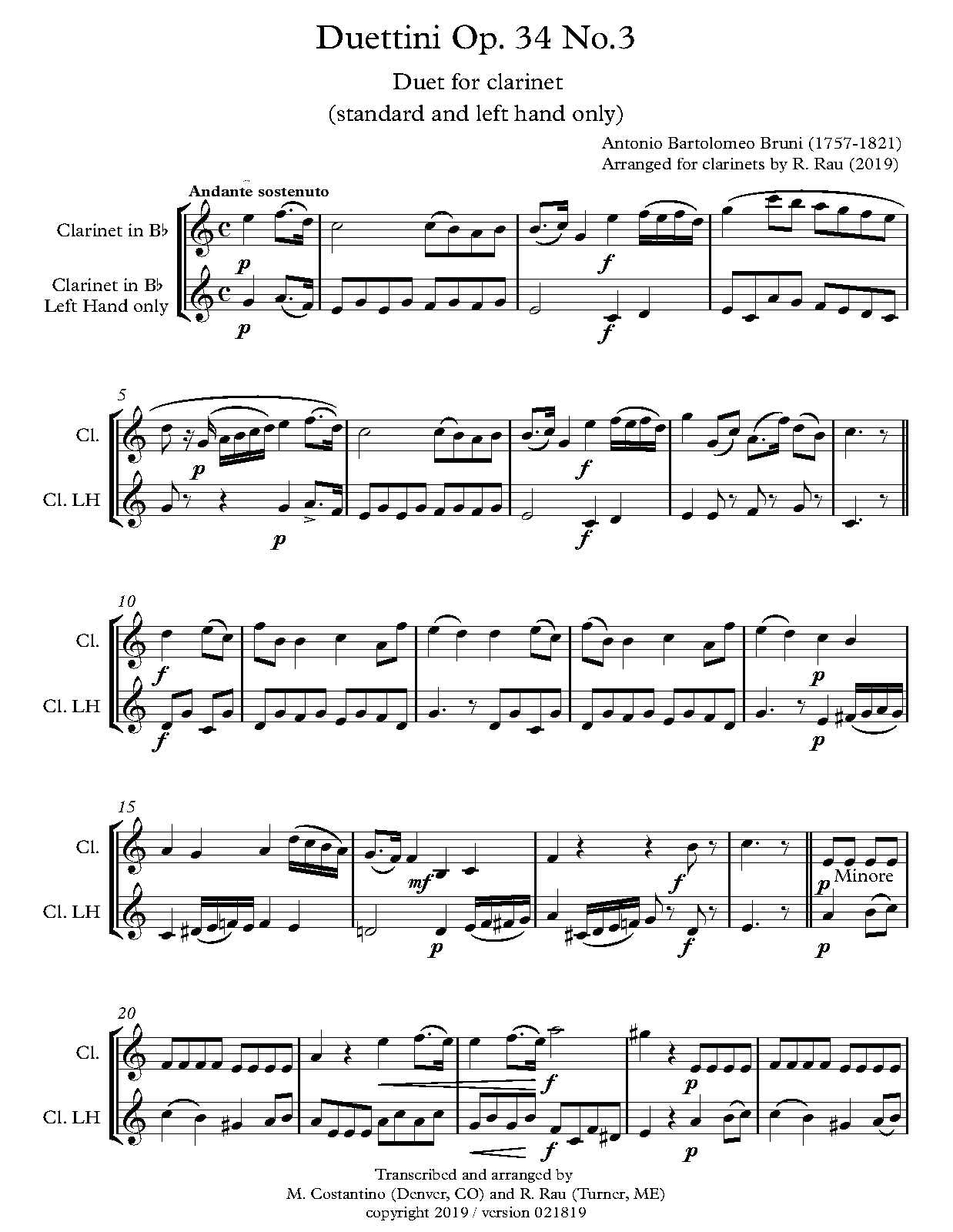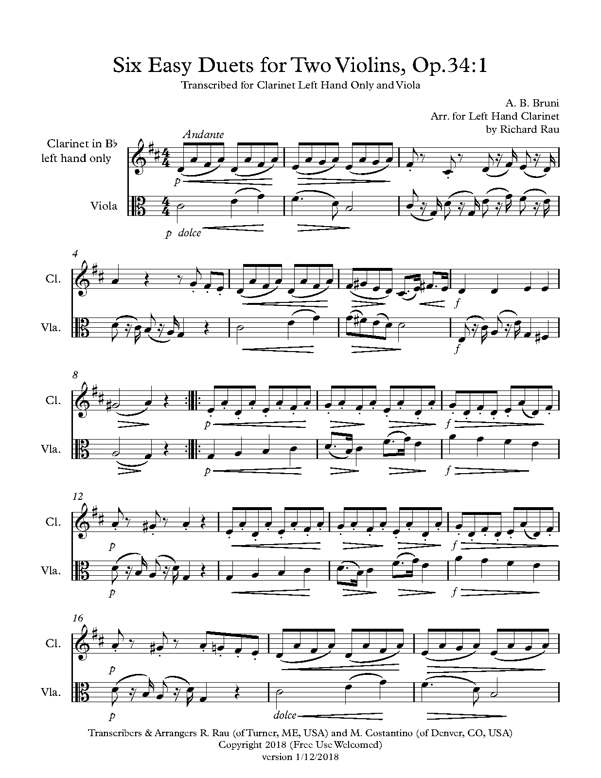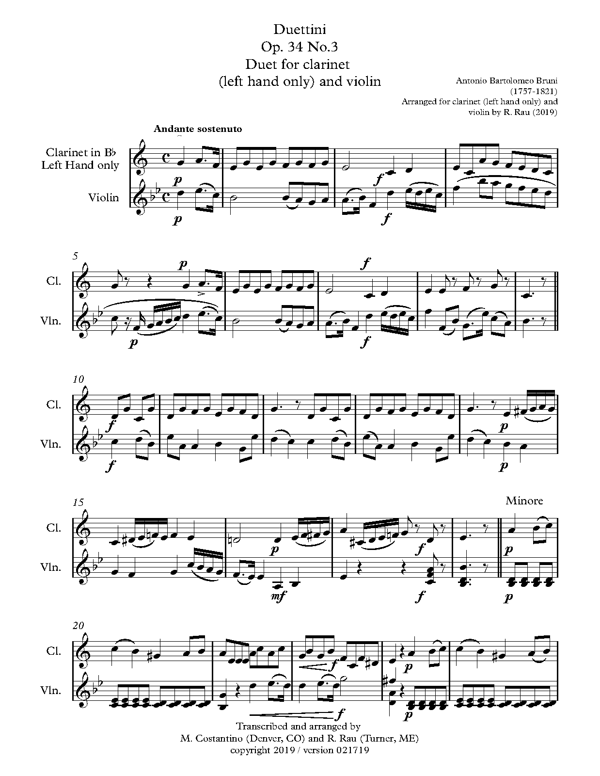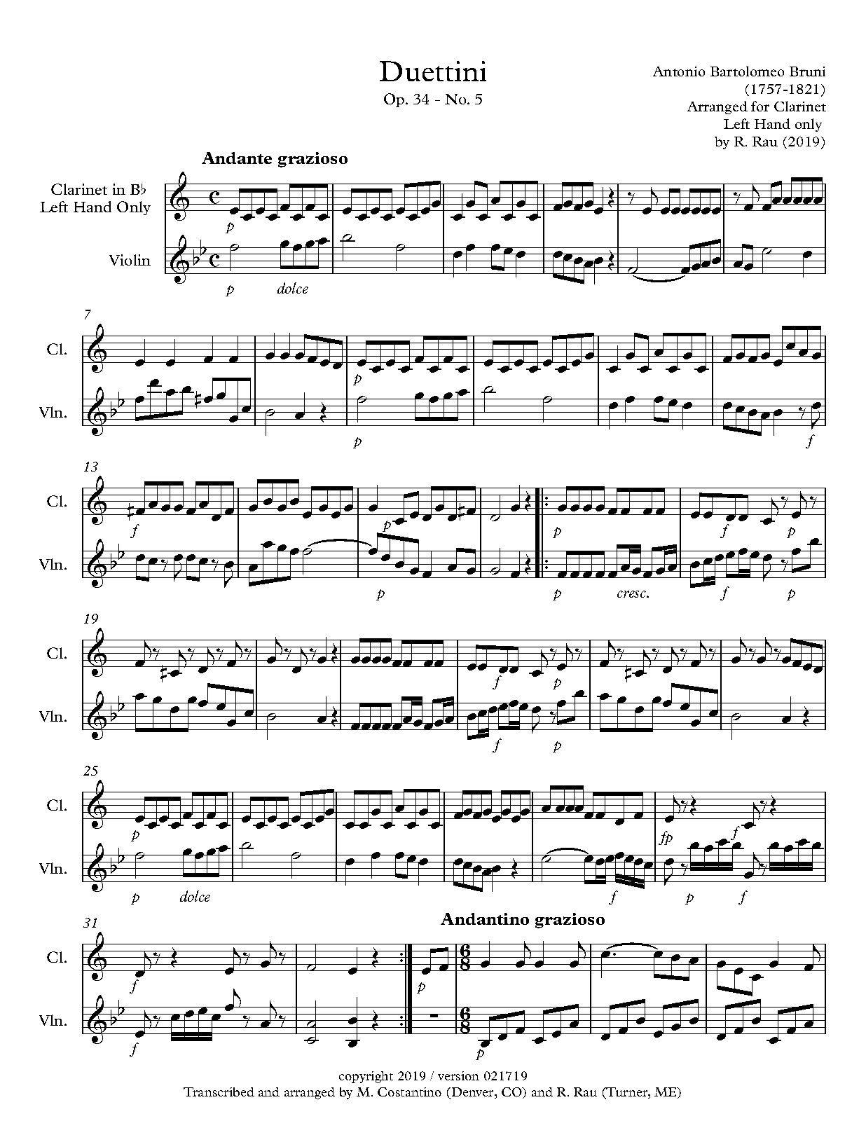 For Clarinet (Left Hand Only) and Violin (Rau)