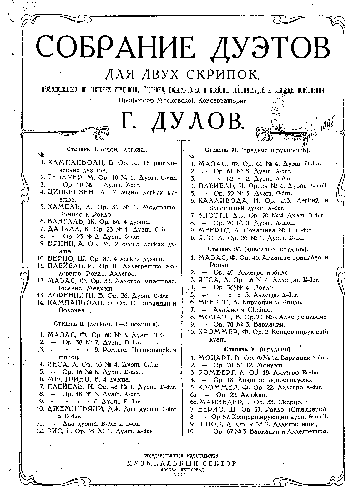| Work Title | Sechs leichte und fortschreitende Duetten (1te bis 5te Position) |