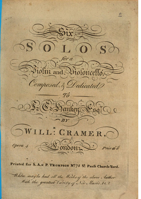 Published: London, James Blundell, Widmung an J. C. Hankey (1781) RISM C 4397