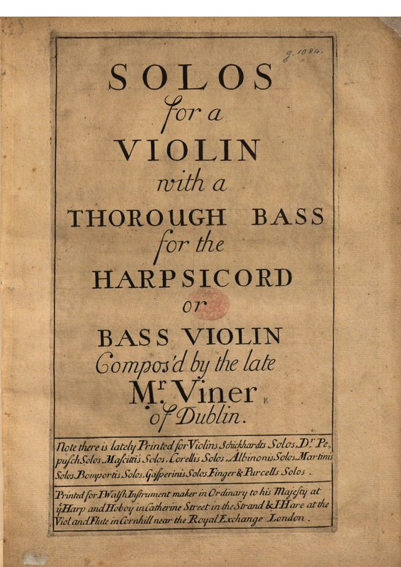 | Alternative. Title | Six Solos for a Violin with a thorough bass for the harpsicord or bass violin compos'd by the late Mr. Viner of Dublin |