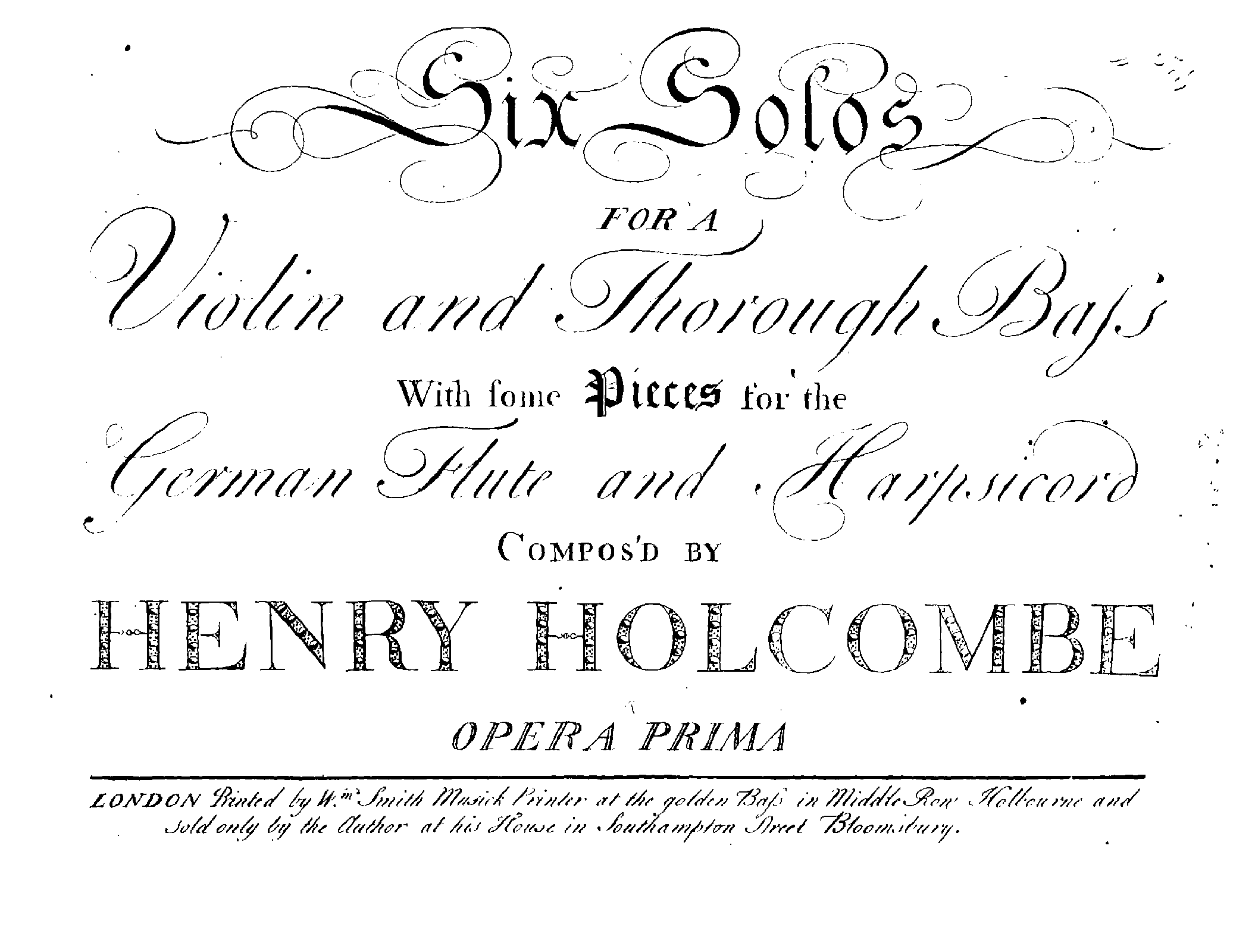 | Alternative. Title | 6 Solos for a Violin and Thorough Bass With some Pieces for the German Flute and Harpsicord |