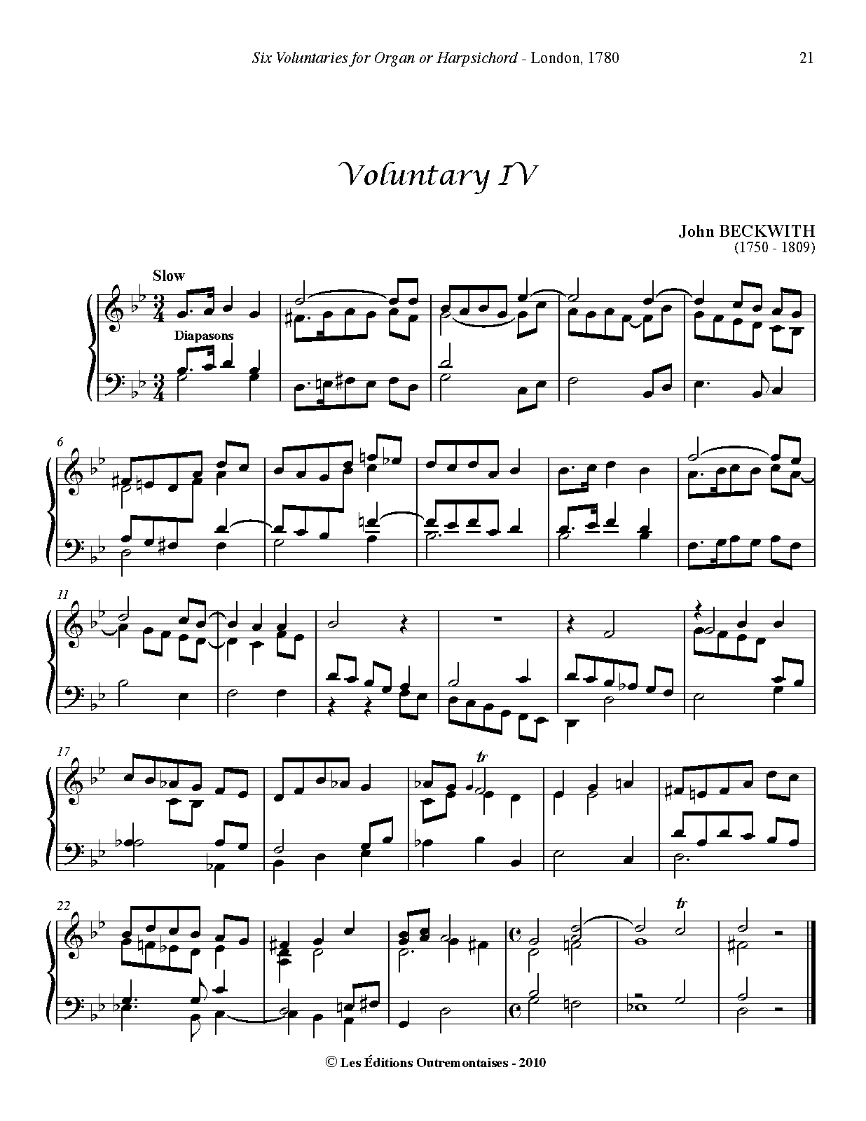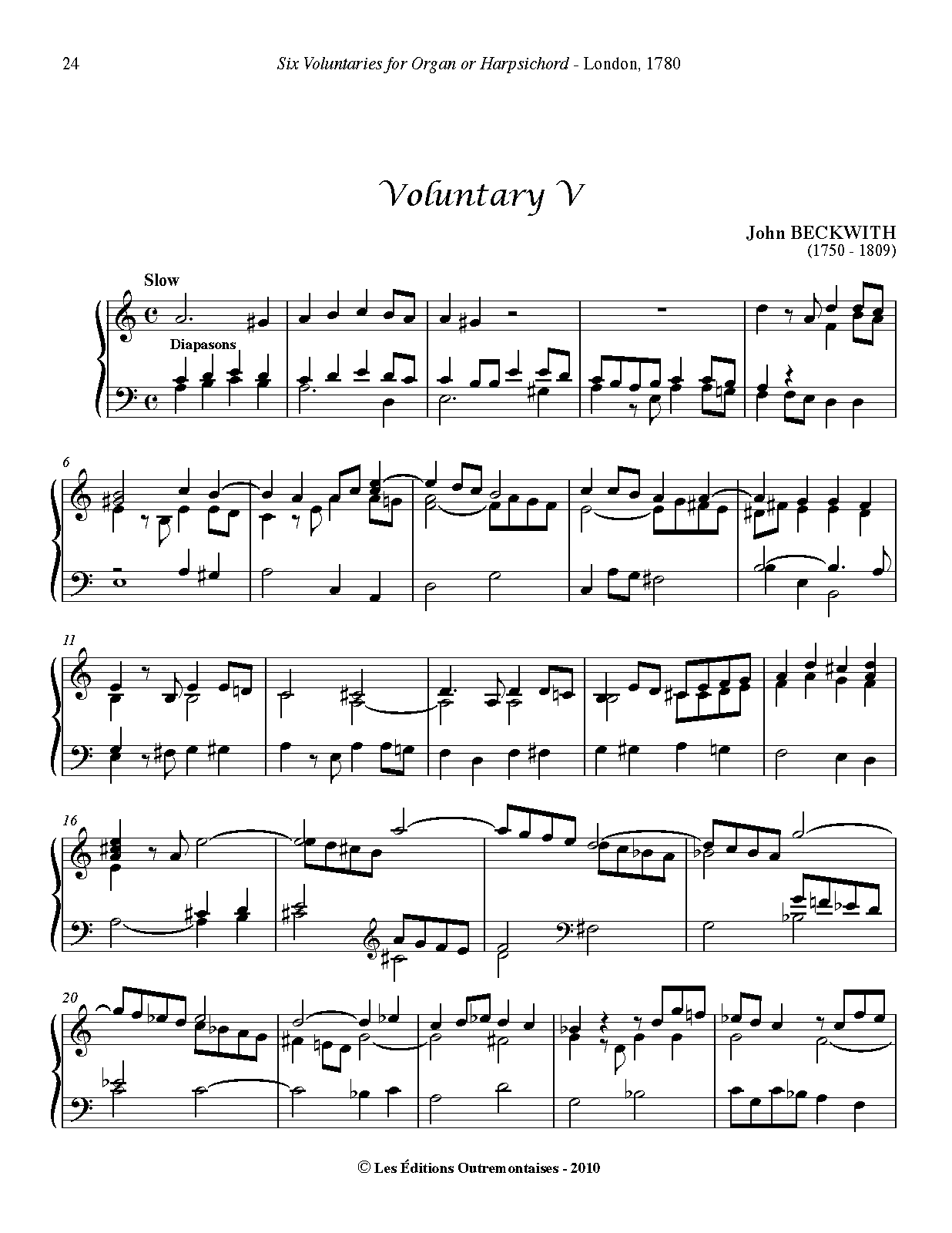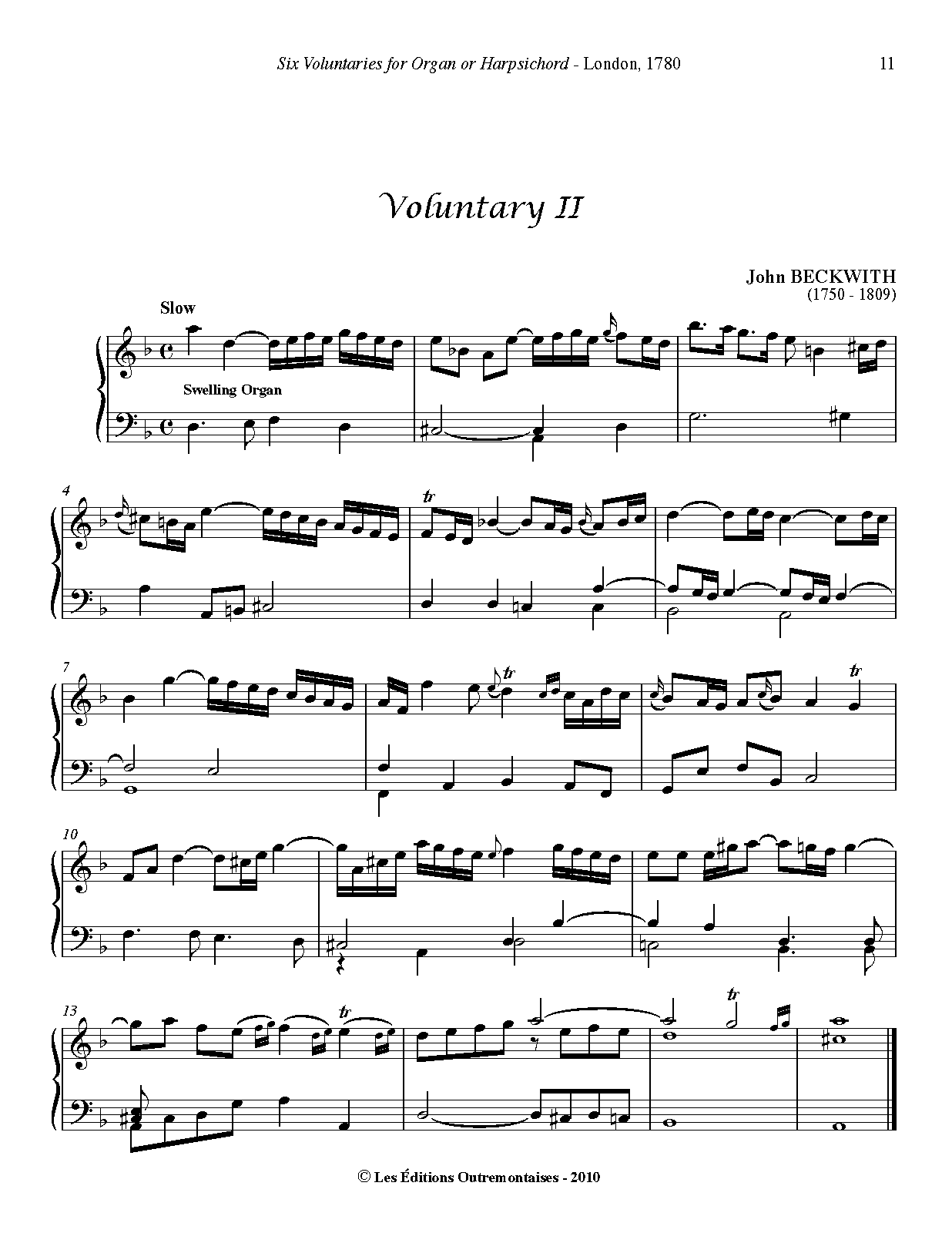 | Work Title | 6 Voluntaries for the Organ or Harpsichord |