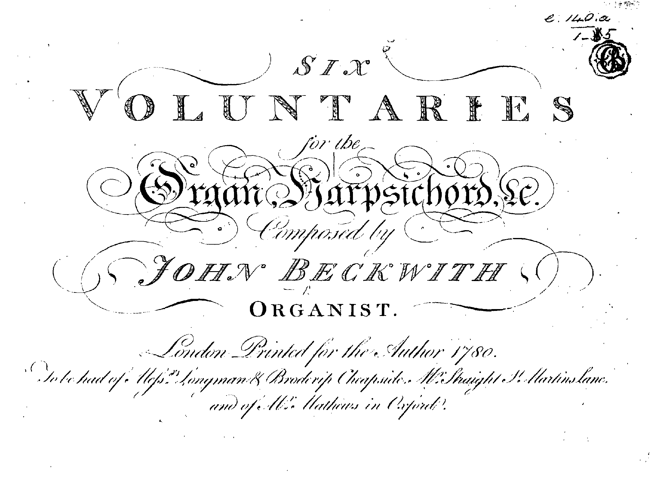 | Alternative. Title | Six Voluntaries for the Organ, Harpsichord, &c |