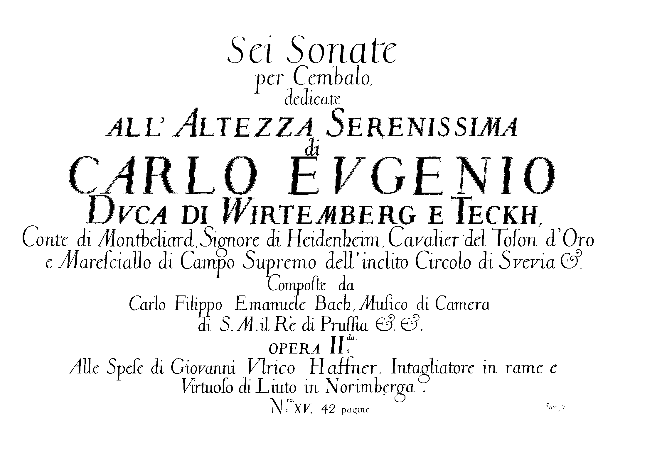| Dedication | Carl Eugen, Duke of Württemberg (1728-93) |