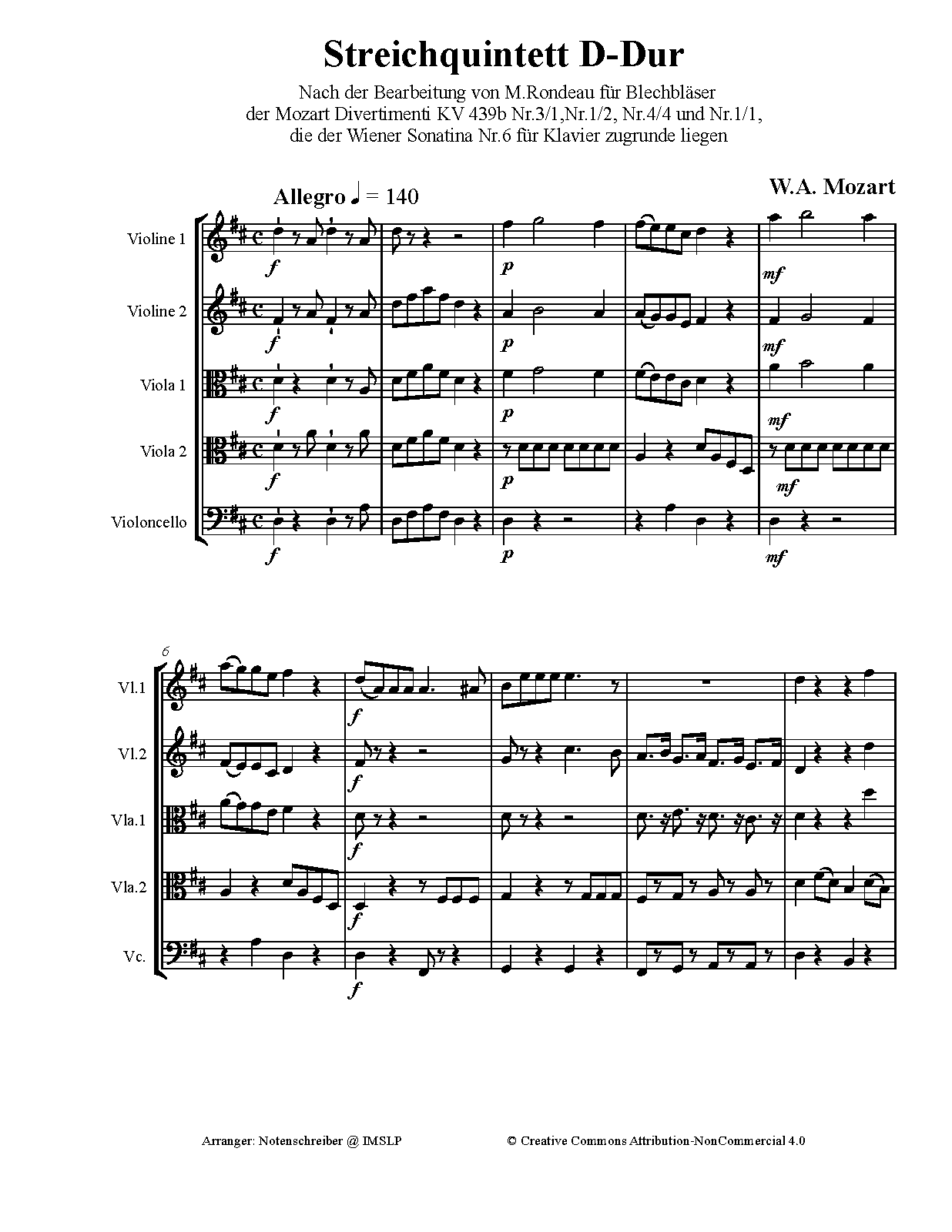| Related Works | Arrangement of selections from 5 Divertimentos, K.Anh.229/439b |