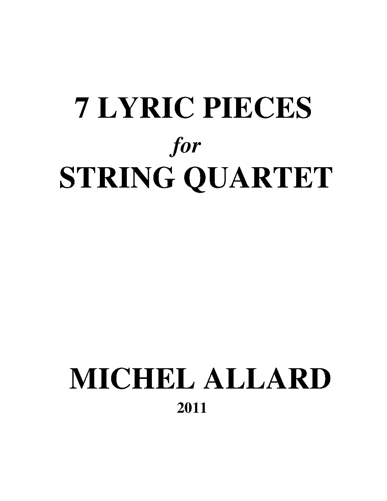 | Work Title | 7 Lyric Pieces for String Quartet |