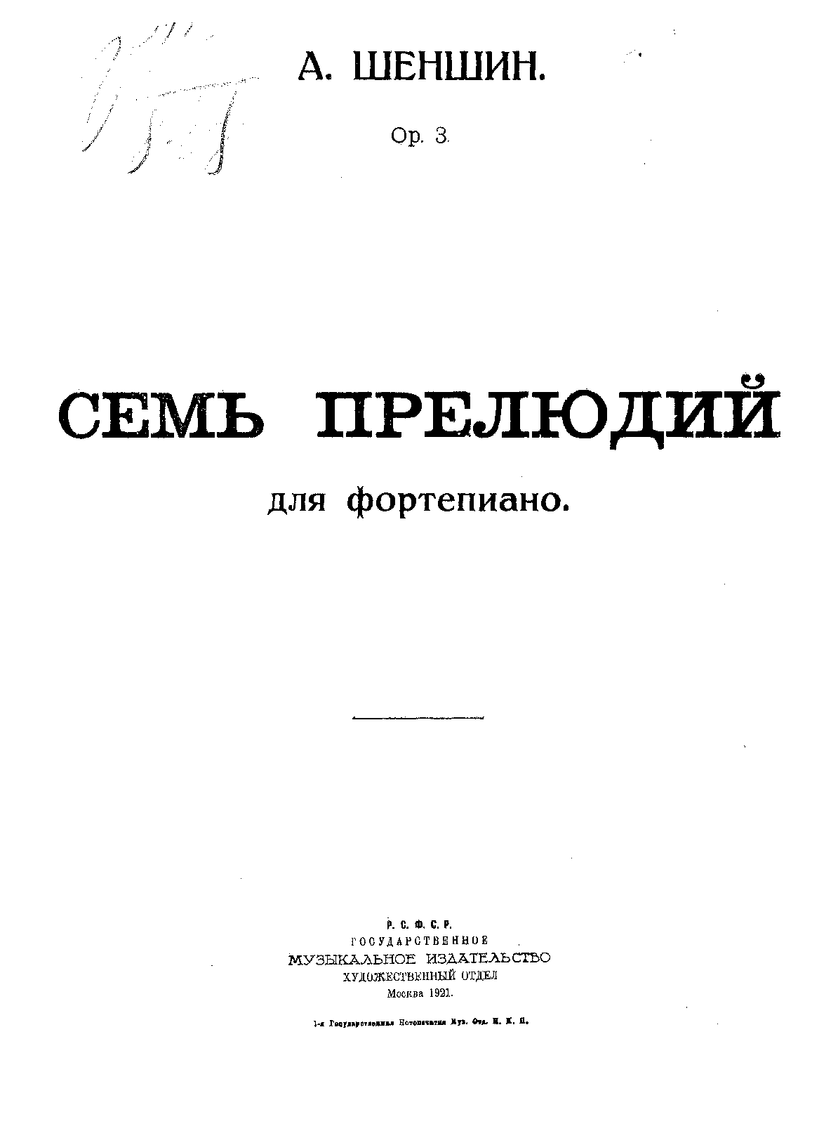 | First Publication. | 1921 - Moscow: Muzizdat N.K.P, Khudozhestvennyi Otdel |