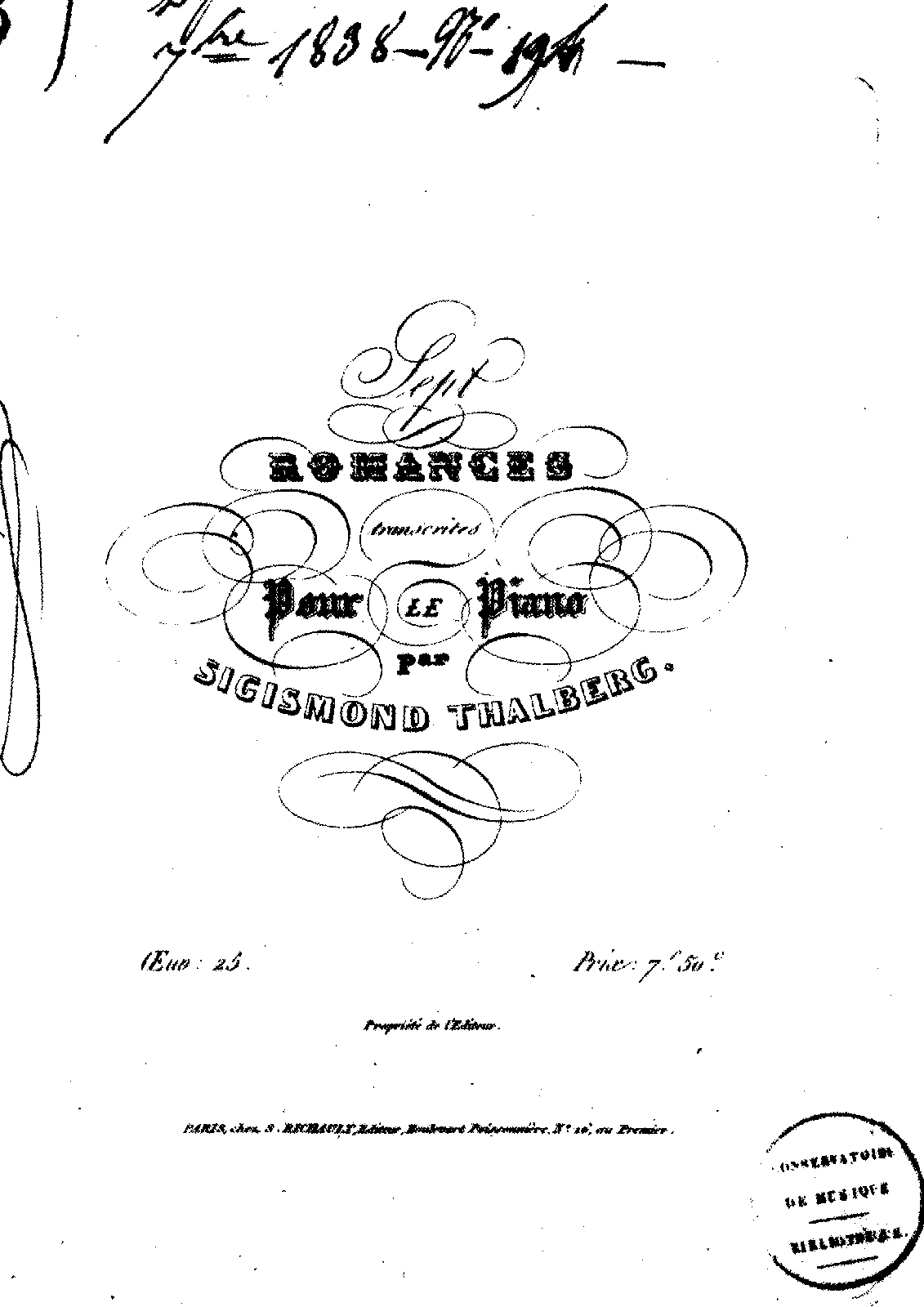 | Alternative. Title | Sept romances expressives, sans paroles, transcrite pour le piano |