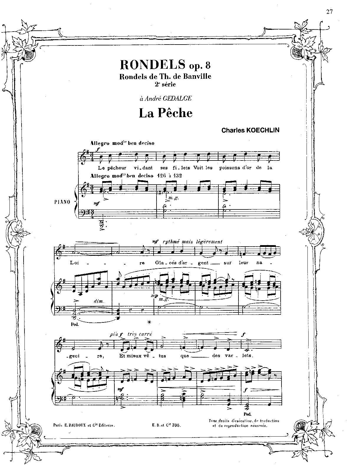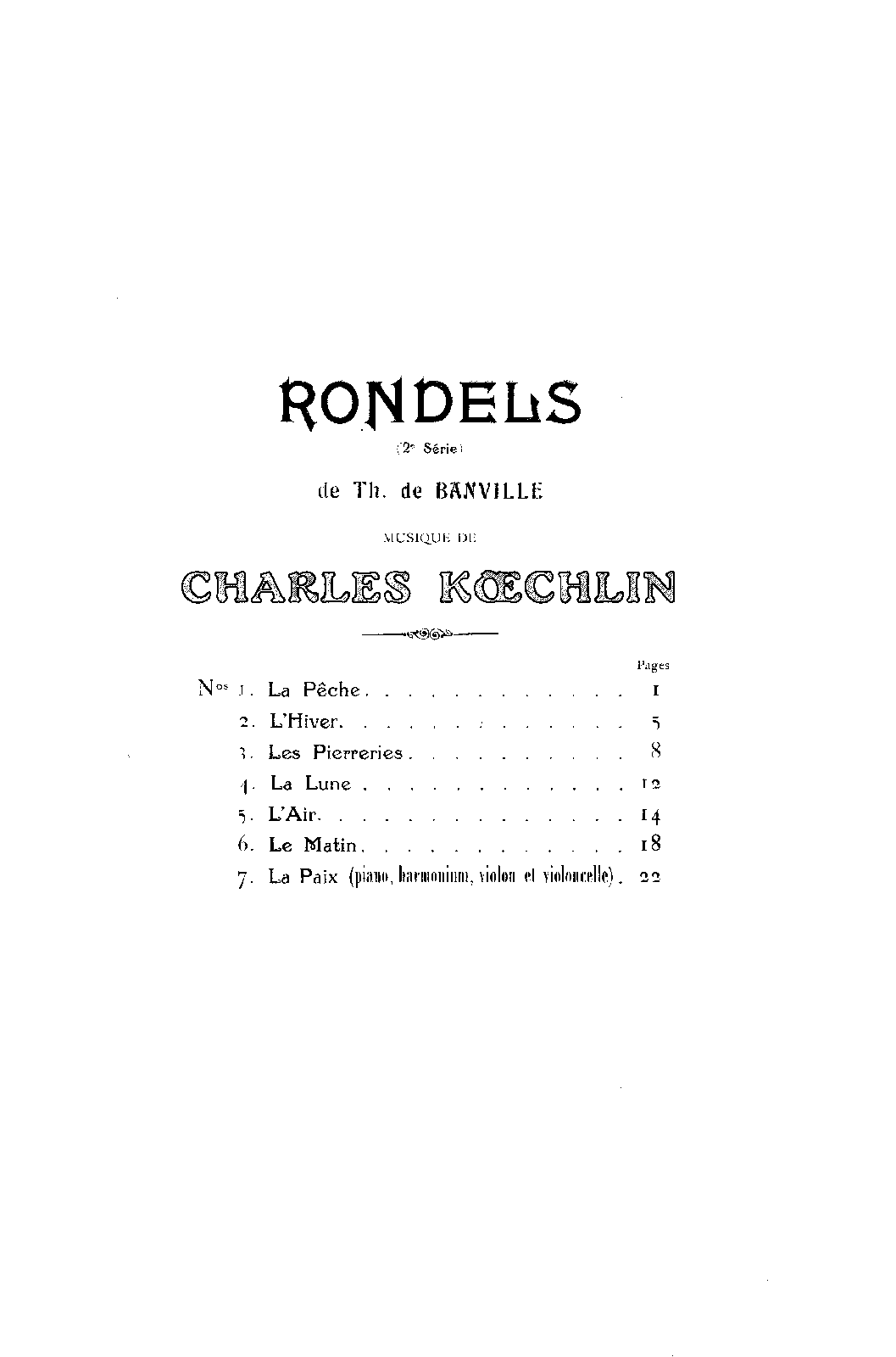 | First Performance. | No. 2: 27 December 1900 by Jane Hatto, Koechlin (pf), Concerts Colonne No. 5: 30 April 1896 by M. Lafarge (T), Salle Pleyel No. 7: 20 January 1897 by MM. Daraux and Engel, Matinée Engel, Th. d'Application |