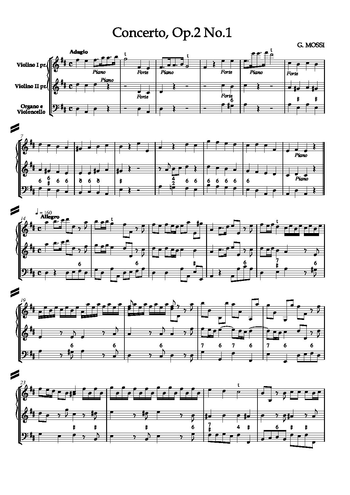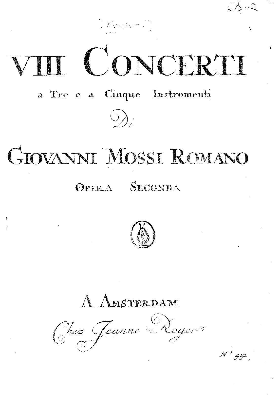 | Movements/SectionsMov'ts/Sec's | 8 concertos (1-5 for 2 violins, continuo, 6-8 with 2 additional (ripieno) violins) |