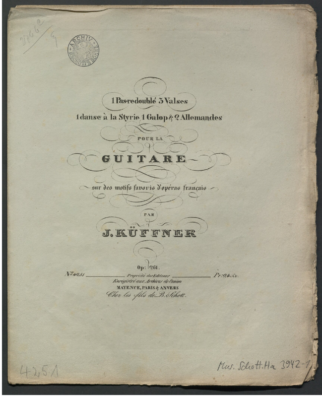 | Alternative. Title | 1 Pas-redoublé, 3 Valses, 1 Danse à la Styrie, 1 Galop & 2 Allemandes pour La Guitare sur des motifs favoris d'opéras français |
