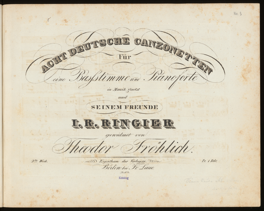 | Alternative. Title | Acht deutsche Canzonetten für eine Bassstimme und Pianoforte, 3tes Werk |