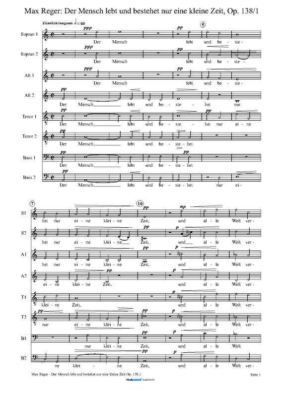 Extra Information Recmusic/Lieder does not yet list no.8, though guessing Martin Luther. Composer said to have died while reading the corrections to the publication of this work (though of course not his last work). (Not sure of exact dedication but apparently it was to a physician who treated him during a nervous breakdown in his last years, or so one gathers. The University here has at least most of the Reger Edition and perhaps that might contain the additional information sought; will see...) Also published by Peters (in 1968 anyway) as 8 Anthems for mixed voices a cappella. - Schissel (first? published 1916- by N. Simrock actually WorldCat; WorldCat.)